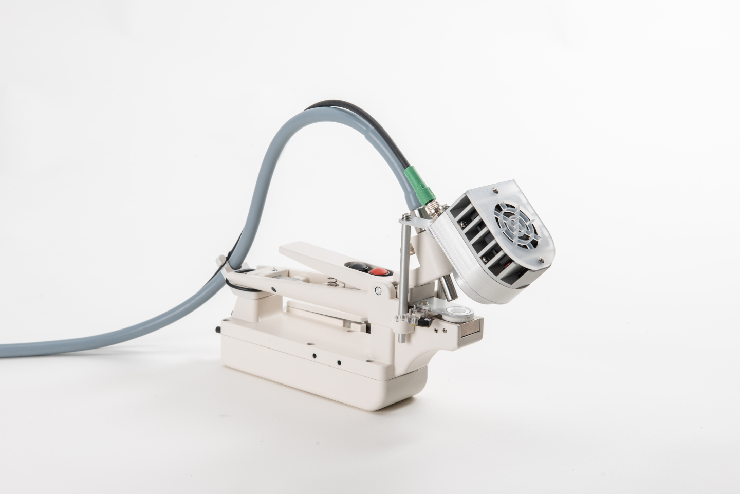 The MINI-PAM-II/POROMETER can be operated with both MINI-PAM-II versions. Depending on the version, the actinic illumination is provided with red or blue actinic light. If you prefer a more flexible choice of light colors, you can use the External LED Source 2054-L for the actinic lighting with red, green, blue or white light, or mixtures of these four light qualities like it was done in this experiment: